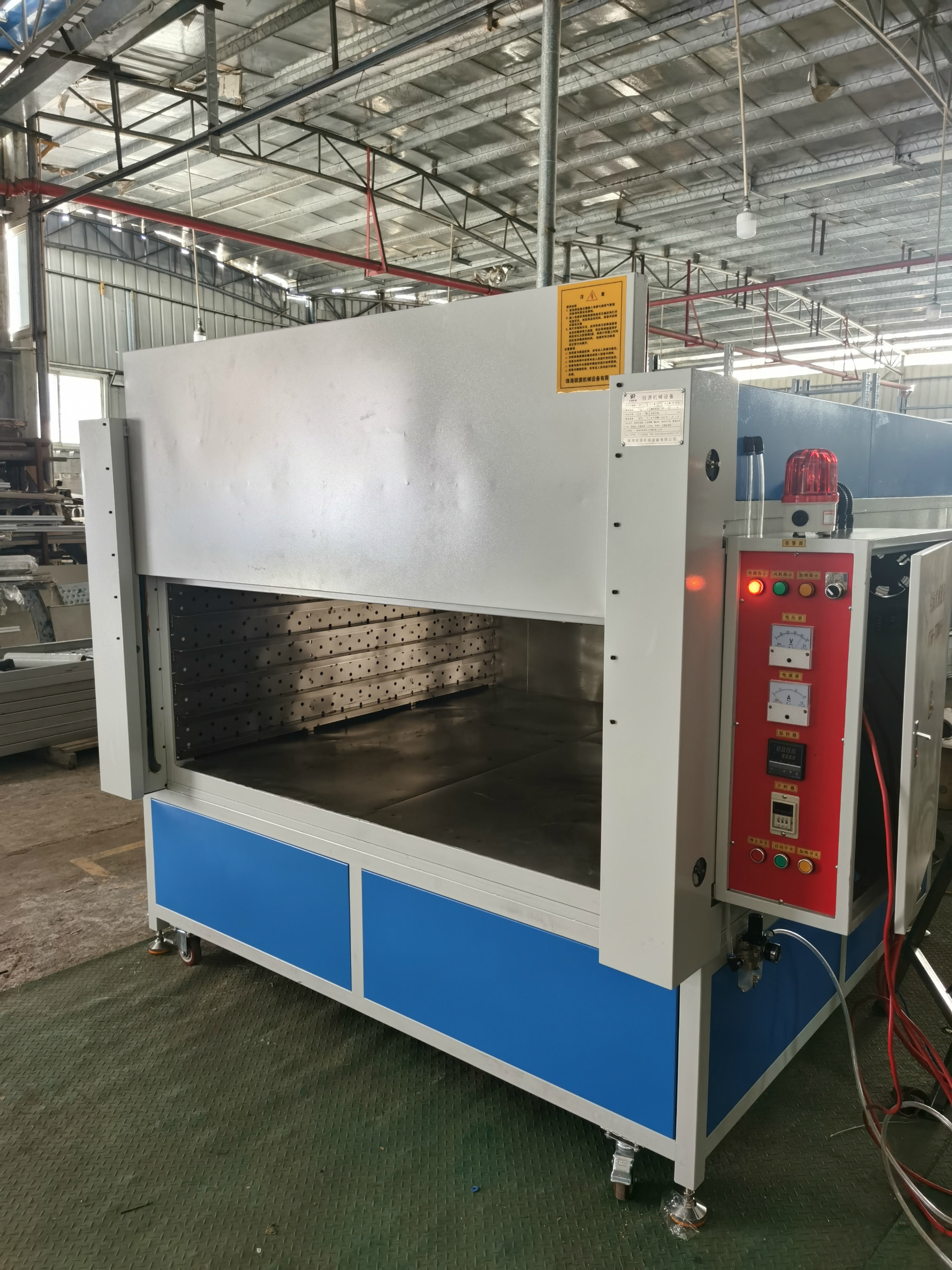 自動升降門,變頻調(diào)節(jié)風量,配自動風閥,烘烤完成后自動強排降溫。